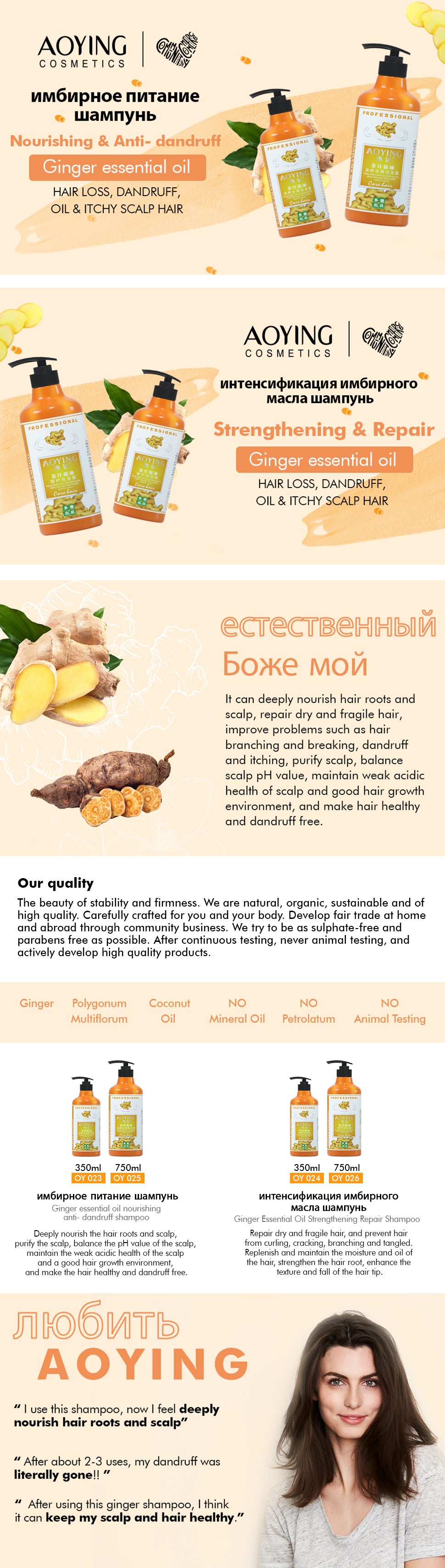 Aoying Укрепляющий восстанавливающий шампунь с эфирным маслом имбиря